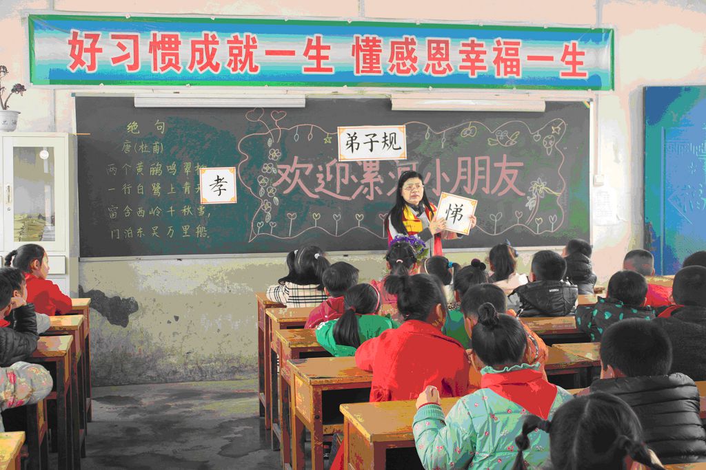 活动中,同学们把自己心爱的图书,用压岁钱购买的崭新书包、文具盒、水彩笔等文具分别赠送给的齐礼小伙伴。 郭惠明老师为孩子们讲国学经典《弟子规》